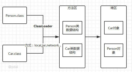 - ClassLoader.loadClass(): 只干一件事情,就是将.class文件加载到jvm中,不会执行static中的内容,只有在newInstance才会去执行static块。