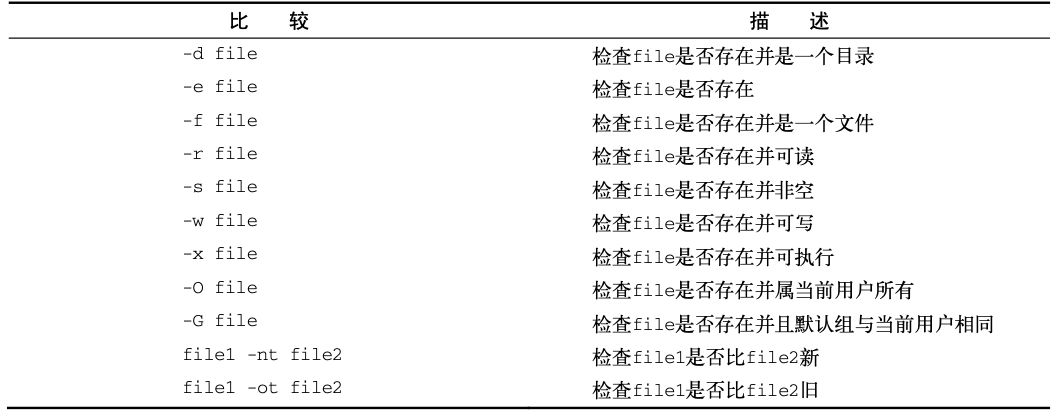 fi方括号定义了测试条件。注意,第一个方括号之后和第二个方括号之前必须加上一个空格, 否则就会报错