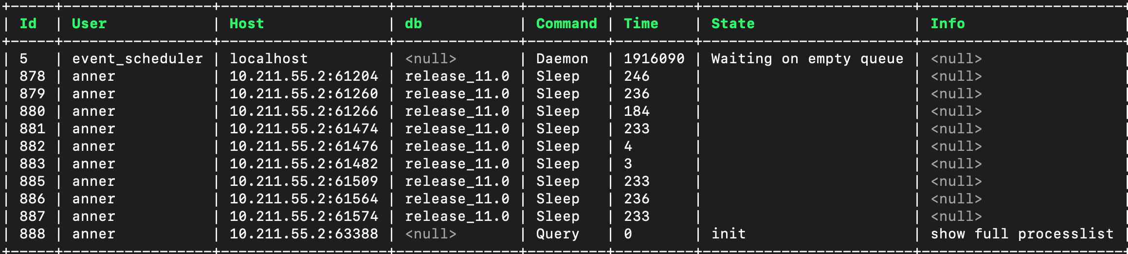 information_schema.processlist 关于当前活动连接的详细信息,包括连接的 ID、用户、主机、状态