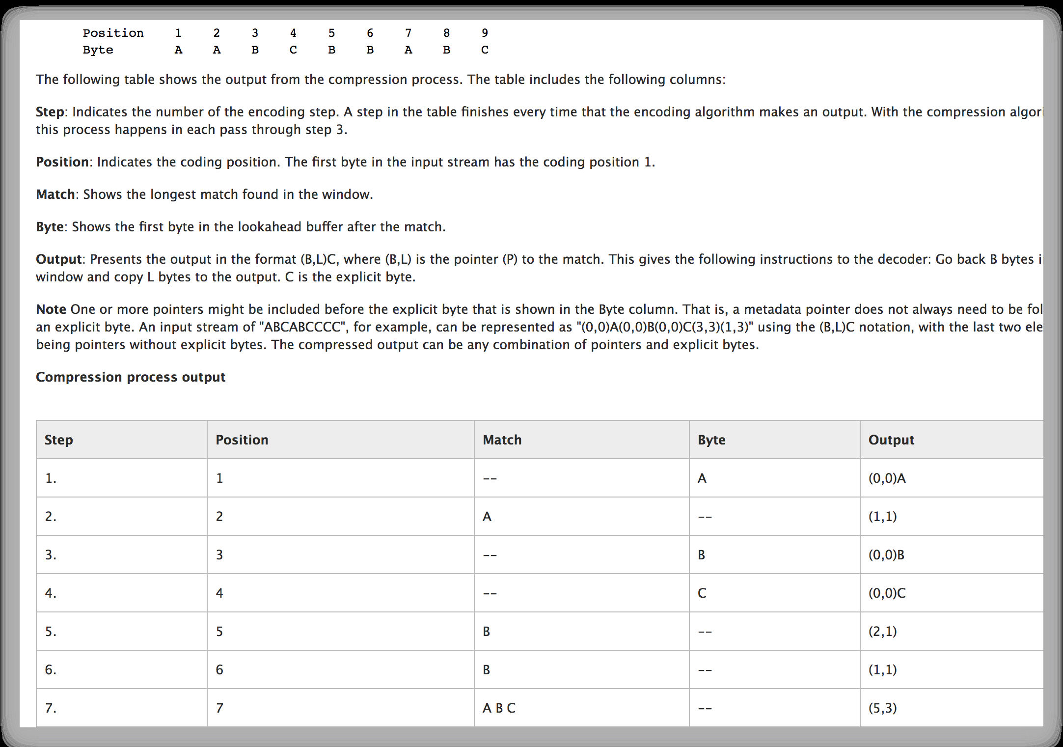 Deflate 是一个同时使用 LZ77 与 Huffman Coding 的算法,这里简单介绍下这两种算法的大致思路: