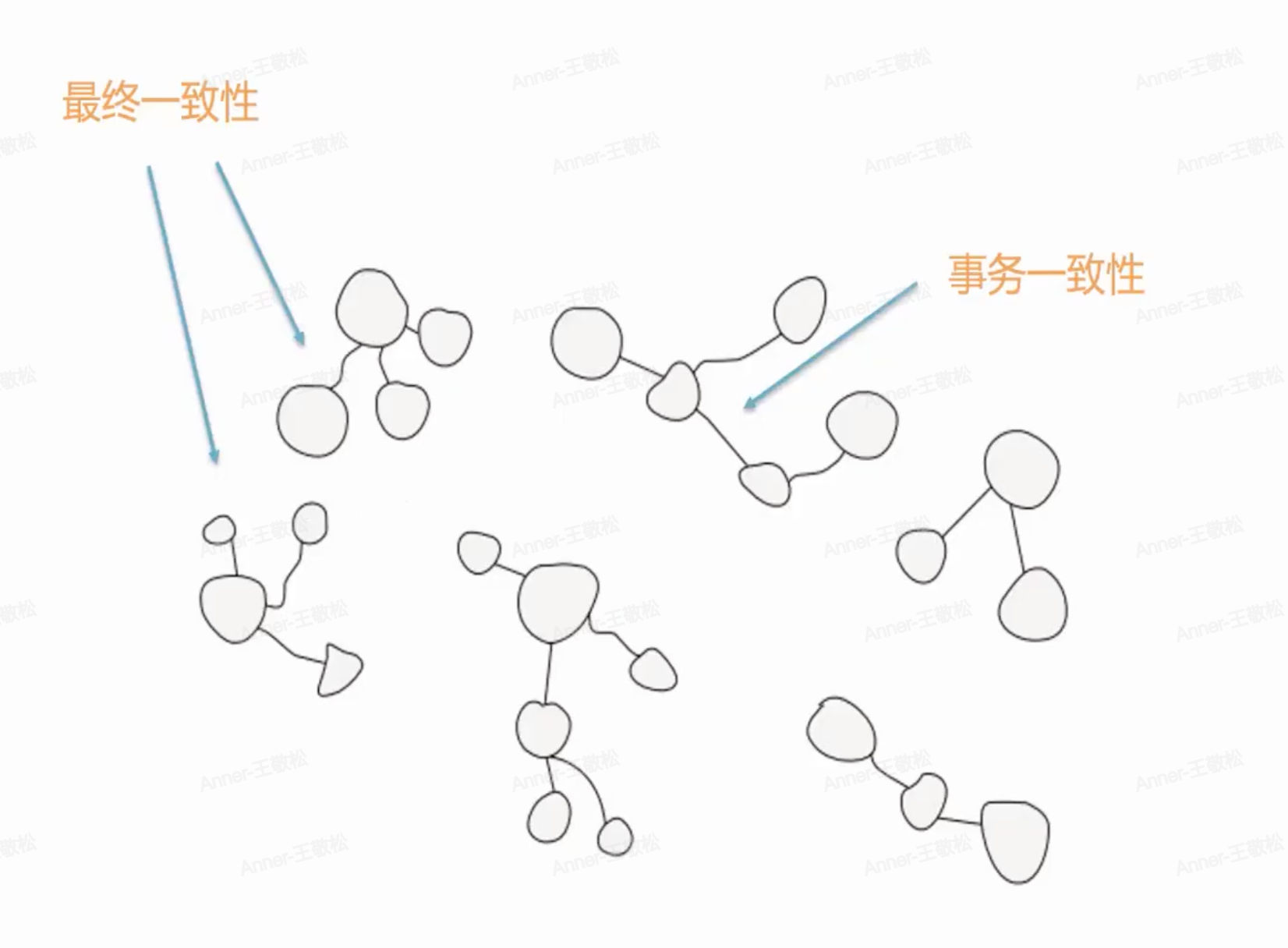 聚合后,分为一个个小的个体,每一个小的事务一致性 , 个体之间保证最终一致性。