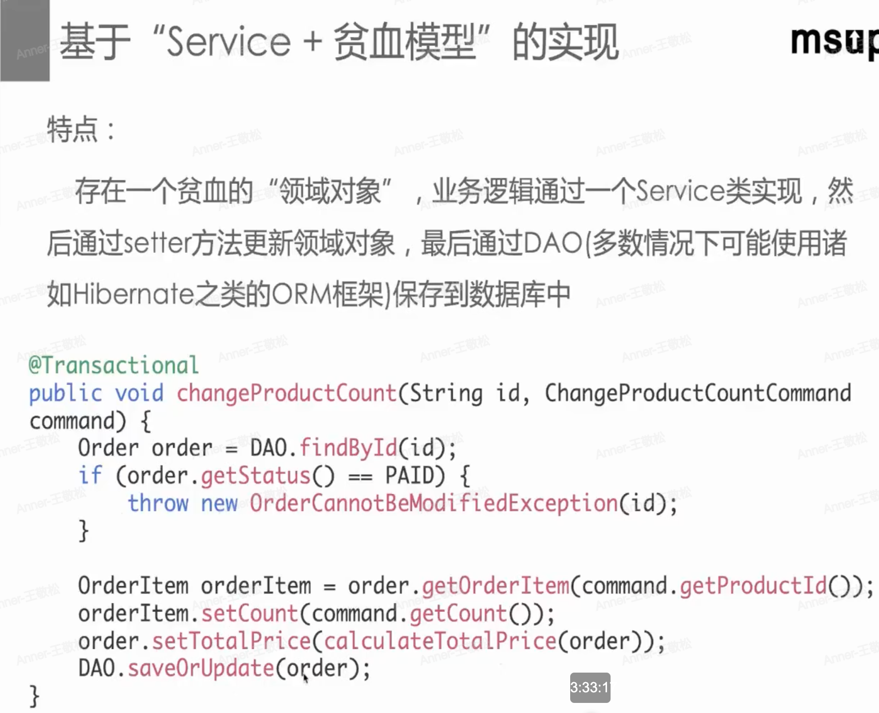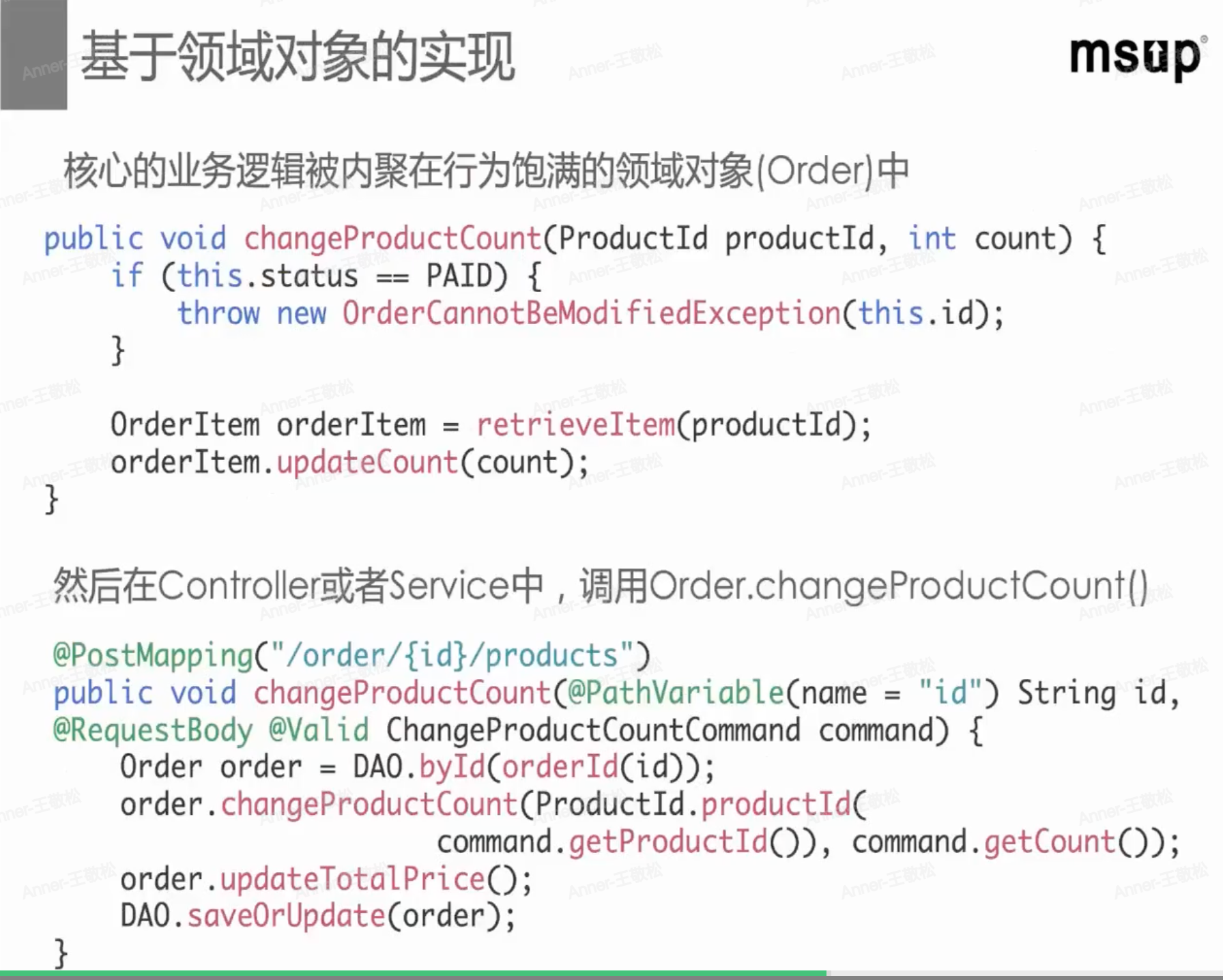 那么,符合DDD的设计 , 修改订单的操作之前是交给Service操作,调用者不关心细节
