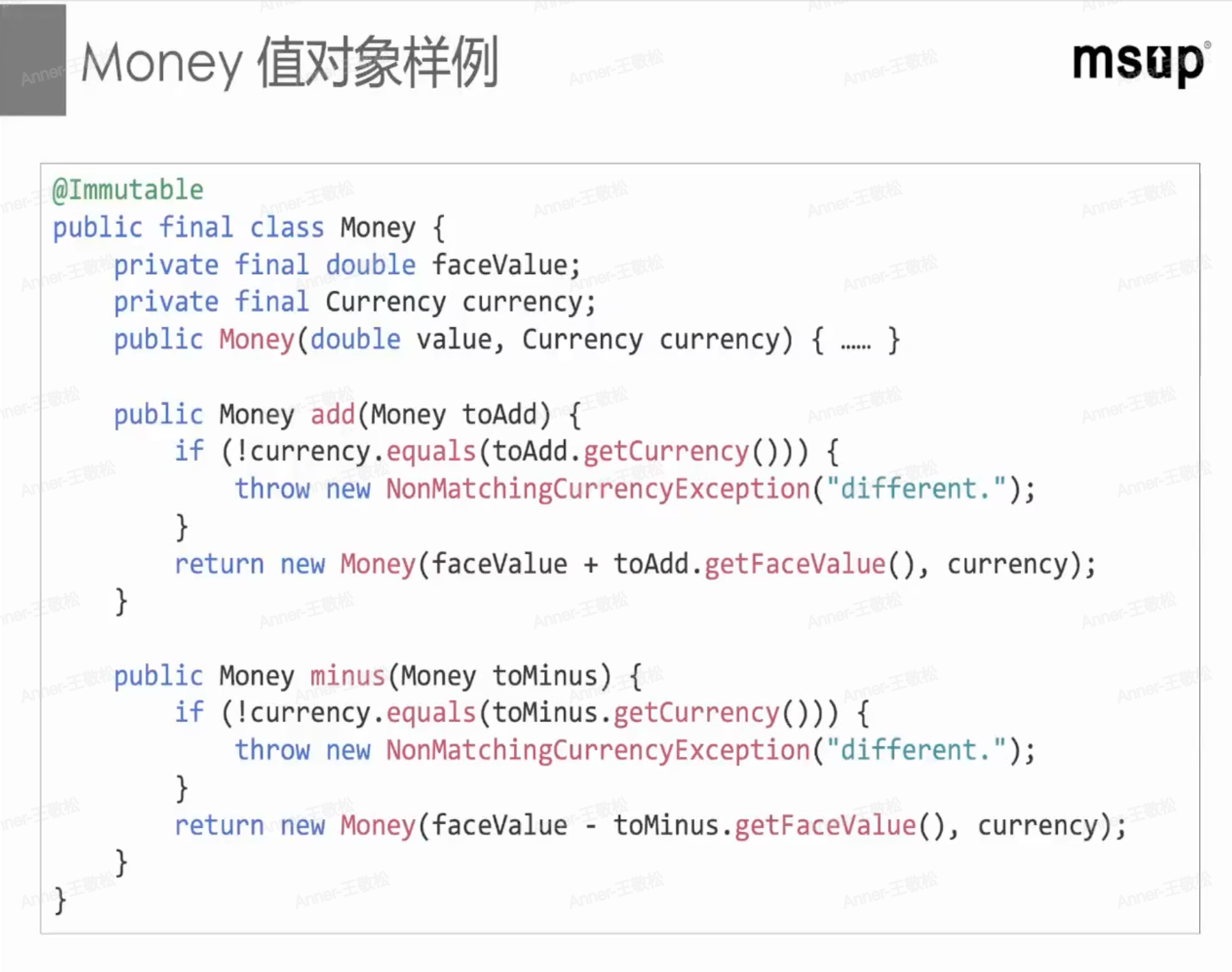 值对象不应该是领域里面的东西,领域里面的东西是实体 值对象可以度量和描述领域里面的实体