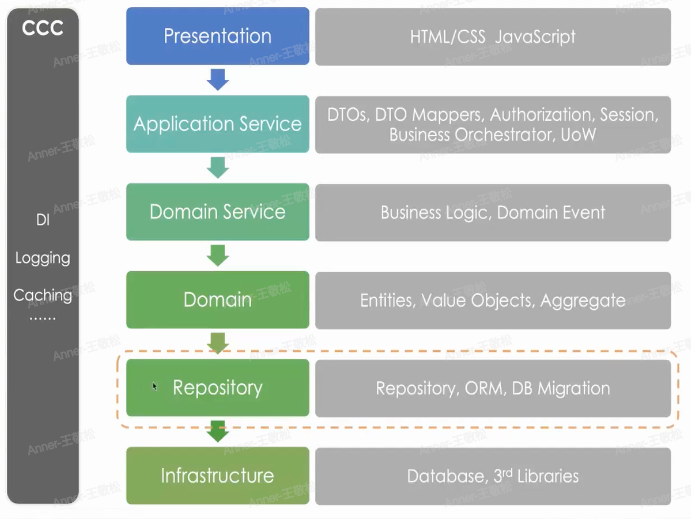 对于跨实体的业务逻辑,放在任何一个实体都是不太合适的。 所以我们继续抽出一层,即领域服务层。