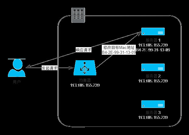 直接把数据包 Headers 中的目标地址改掉,修改后原本由用户发给均衡器的数据包,也会被三层交换机转发送到真实服务器的网卡上,而且因为没有经过 IP 隧道的额外包装,也就无须再拆包了