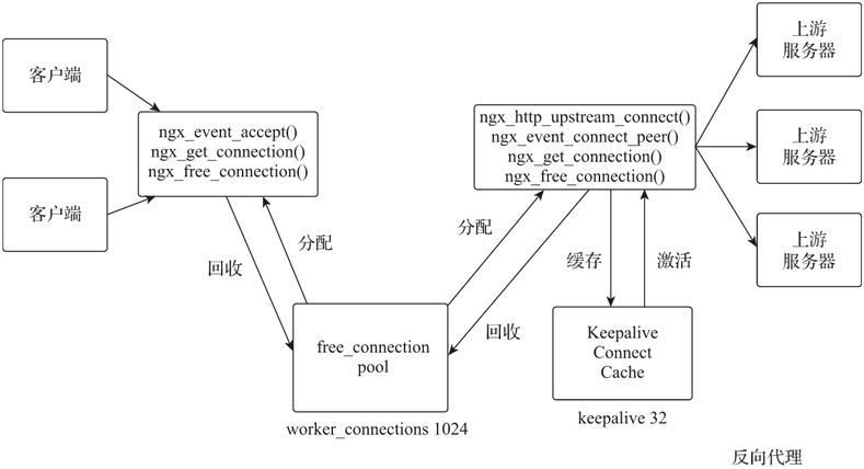 当工作进程与被代理服务器有新的连接请求时,会先在长连接缓存池中查找符合需求的连接,如果存在则使用该连接,否则创建新连接。
