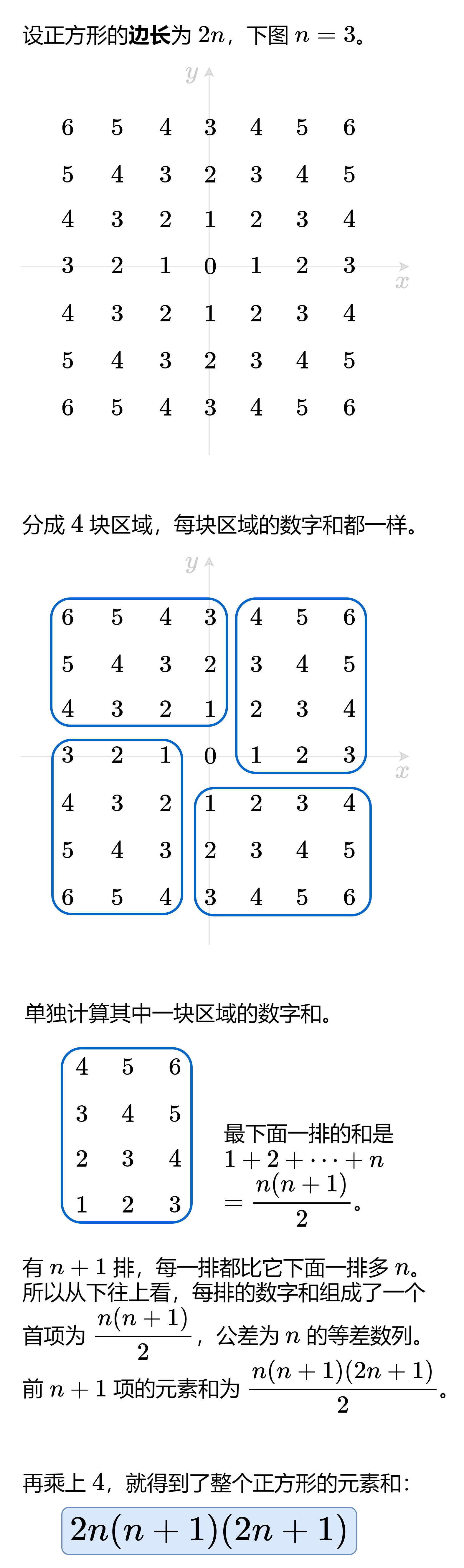 给你一个用无限二维网格表示的花园,每一个 整数坐标处都有一棵苹果树。整数坐标 (i, j) 处的苹果树有 |i| + |j| 个苹果。